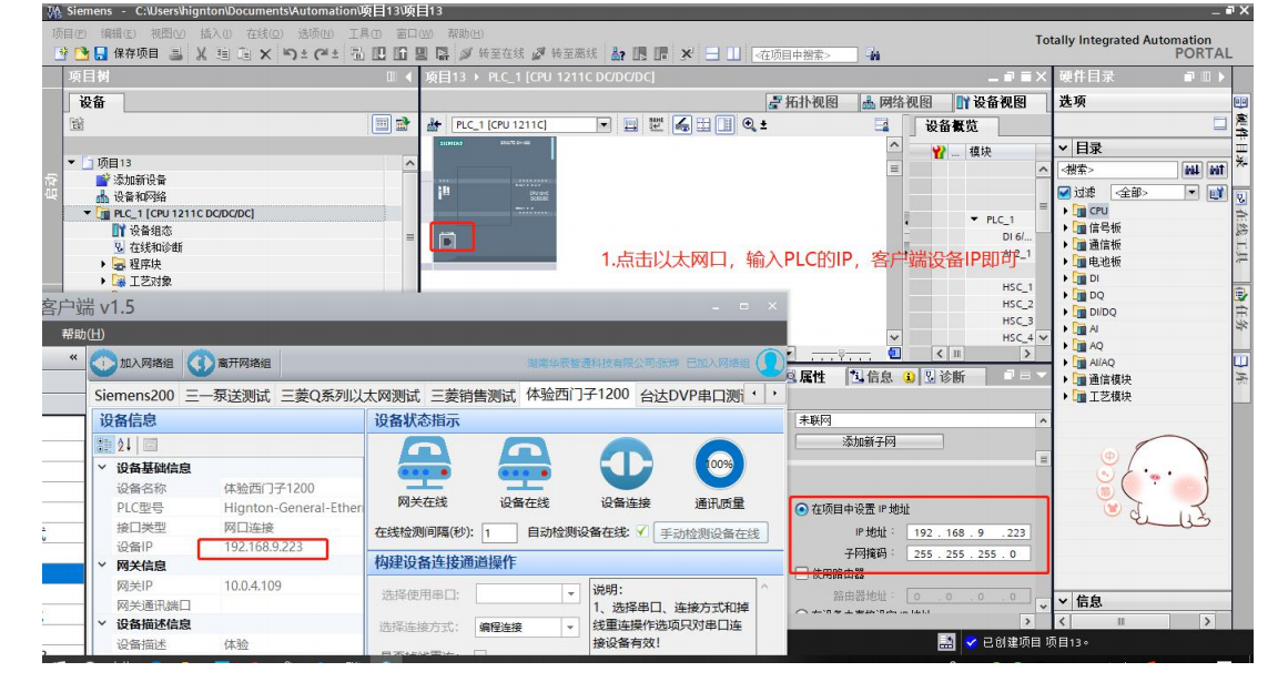 3.點(diǎn)擊組態(tài)界面,以太網(wǎng)接口,輸入PLC的IP地址(客戶端的設(shè)備IP即是,如圖192.168.9.223)。