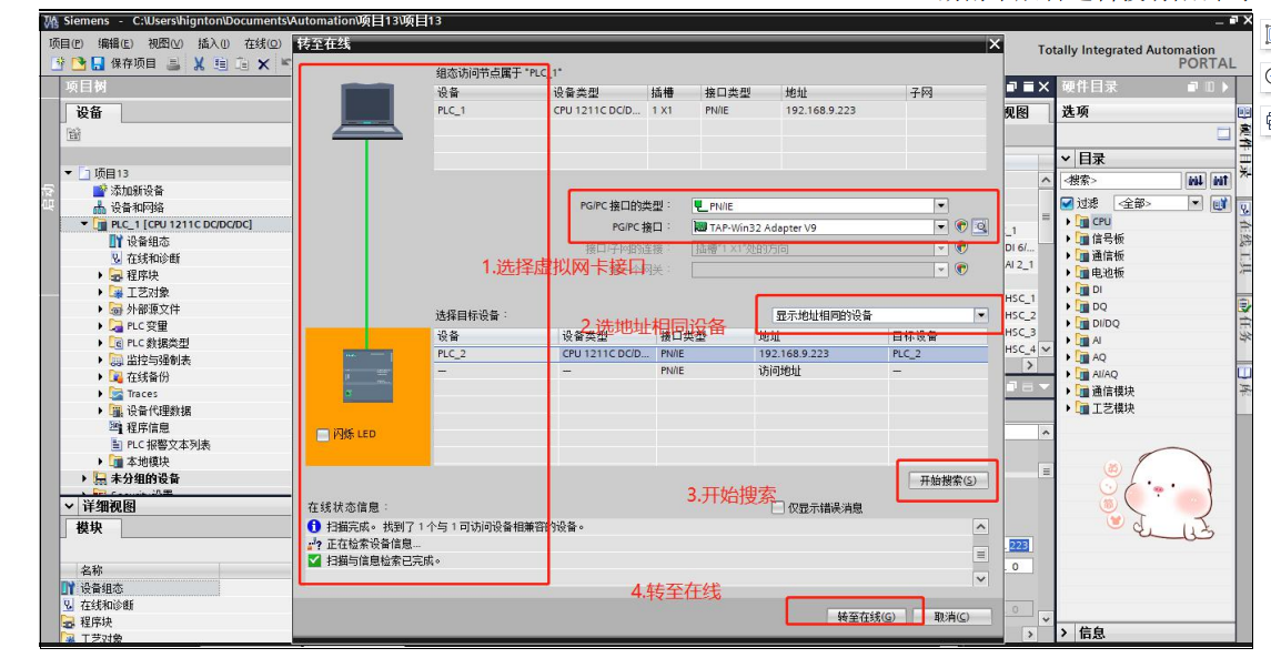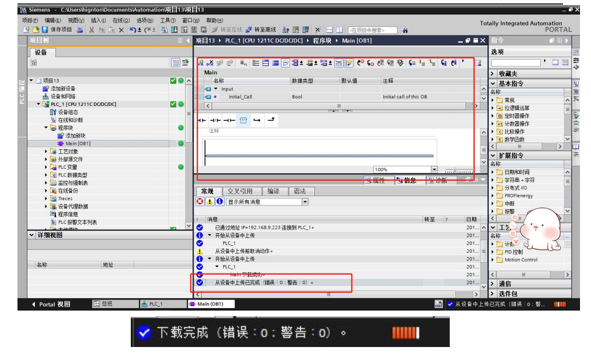 5.上載及下載程序,如下圖(博圖版本與程序需要一一對應(yīng),不同的版本及程序存在不兼容的情況,用戶使用請注意版本跟程序兼容)。